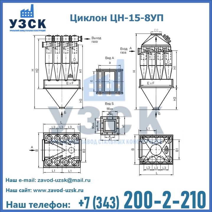 Завод «УЗСК» в Экибастузе предлагает большой выбор циклонов ЦН-15-500×8УП и прочих устройств, полностью укомплектованных и готовых к эксплуатации. Мы гарантируем соответствие оборудования всем требованиям ГОСТ и ТУ, износостойкость и высокую производительность предлагаемого оборудования. Уральский Завод Стальных Конструкций изготавливает и продает надежное, эффективное и производительное оборудование, имеющее длительную гарантию и большой эксплуатационный ресурс. Если требуется изготовить циклон нестандартных размеров, то такой вариант выполнения заказа тоже предусмотрен, так как предприятие имеет собственные производственные площади и надежных поставщиков. На все поставляемое или производимое оборудование имеются чертежи и прочая техническая документация. Заказать и купить циклоны или прочее оборудование высокого качества и по доступной цене можно через наш сайт или по указанному в разделе «Контакты» телефону.