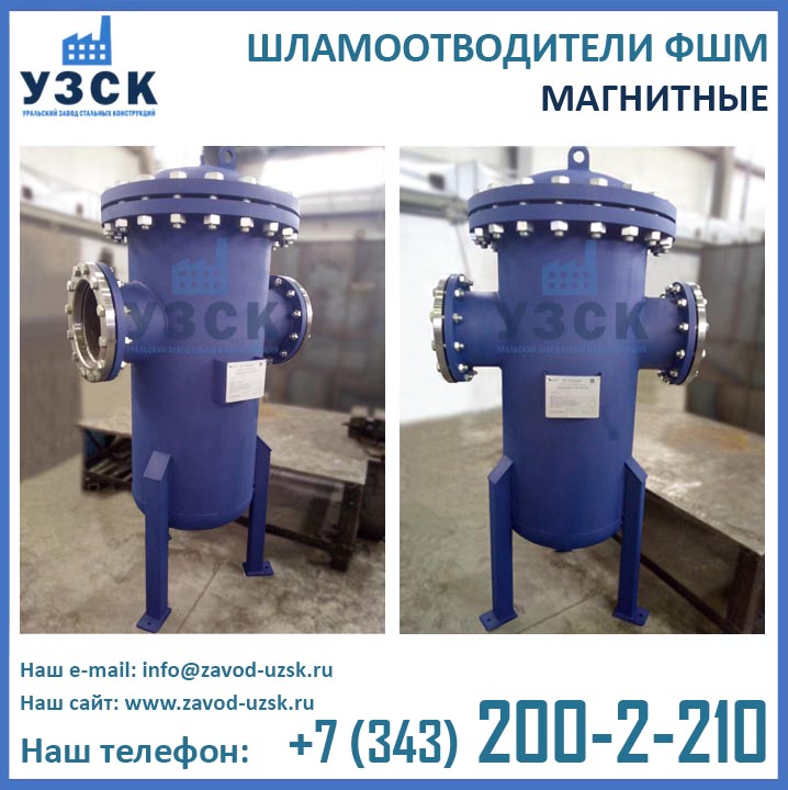 Являясь непосредственным изготовителем фильтров магнитных ФШМ, Уральский завод стальных конструкций предлагает самые низкие цены на шламоотделители ФШМ Ду250 в Экибастузе. Производство магнитных шламоотводителей осуществляется в самые короткие сроки специалистами сварочного производства НАКС по аттестованной технологии сварки при помощи сварочного оборудования, аттестованного Национальным агентством контроля сварки.
