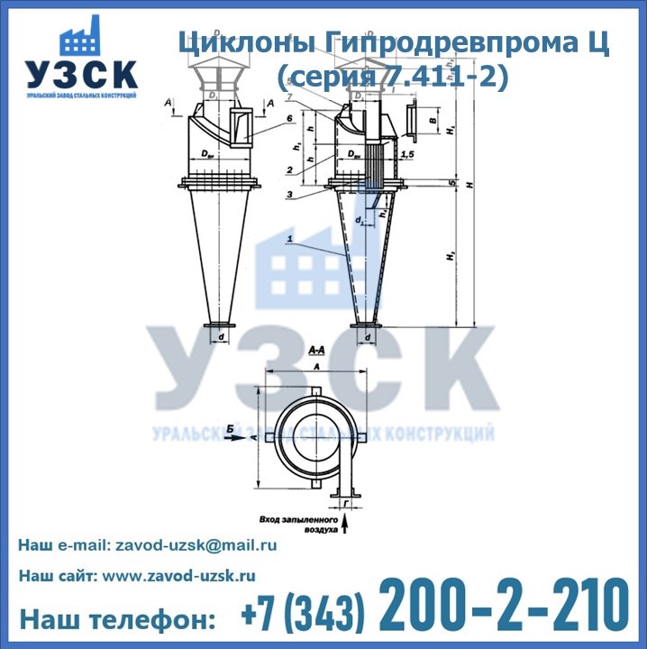 Циклоны Гипродревпрома Ц (серия 7.411-2) высокого качества можно купить в компании «УЗСК» в Экибастузе. Наши специалисты предоставят всю необходимую информацию информацию и помогут с выбором модели циклона. Подробные технические характеристики, конструкцию, параметры, ассортимент и стоимость продукции можно также найти на сайте УЗСК.