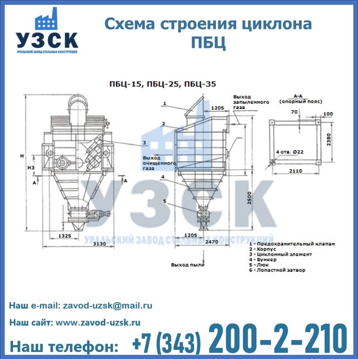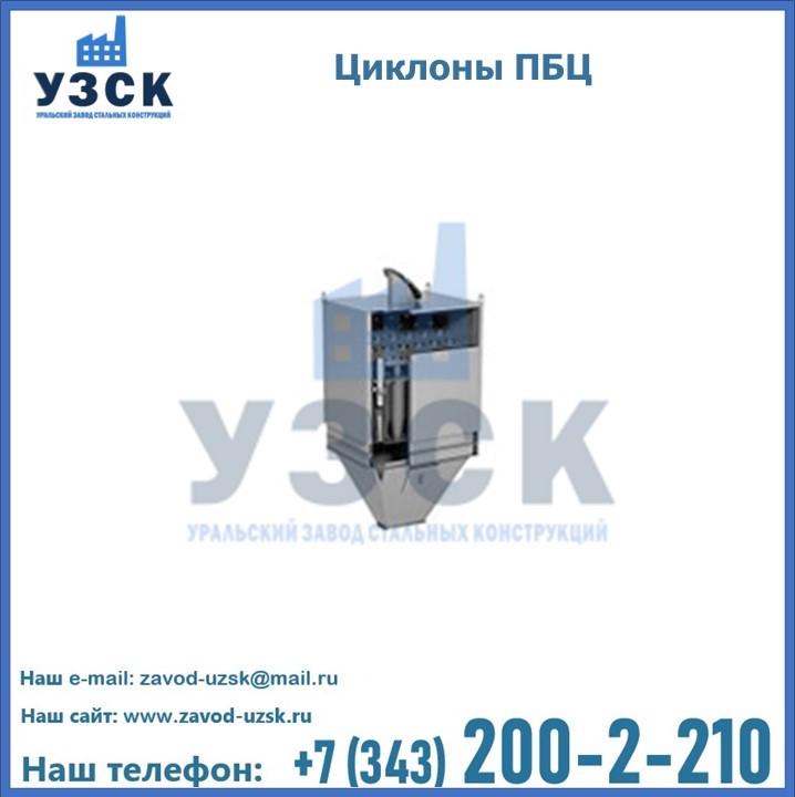 Завод «УЗСК» в Экибастузе предлагает приобрести циклоны ПБЦ и прочие устройства, полностью укомплектованные и готовые к эксплуатации. Мы гарантируем соответствие оборудования всем требованиям ГОСТ и ТУ, износостойкость и высокую производительность предлагаемого оборудования. Уральский Завод Стальных Конструкций изготавливает и продает надежное, эффективное и производительное оборудование, имеющее длительную гарантию и большой эксплуатационный ресурс. Если требуется изготовить циклон нестандартных размеров, то такой вариант выполнения заказа тоже предусмотрен, так как предприятие имеет собственные производственные площади и надежных поставщиков. На все поставляемое или производимое оборудование имеются чертежи и прочая техническая документация. Заказать и купить циклоны или прочее оборудование высокого качества и по доступной цене можно через наш сайт или по указанному в разделе «Контакты» телефону.