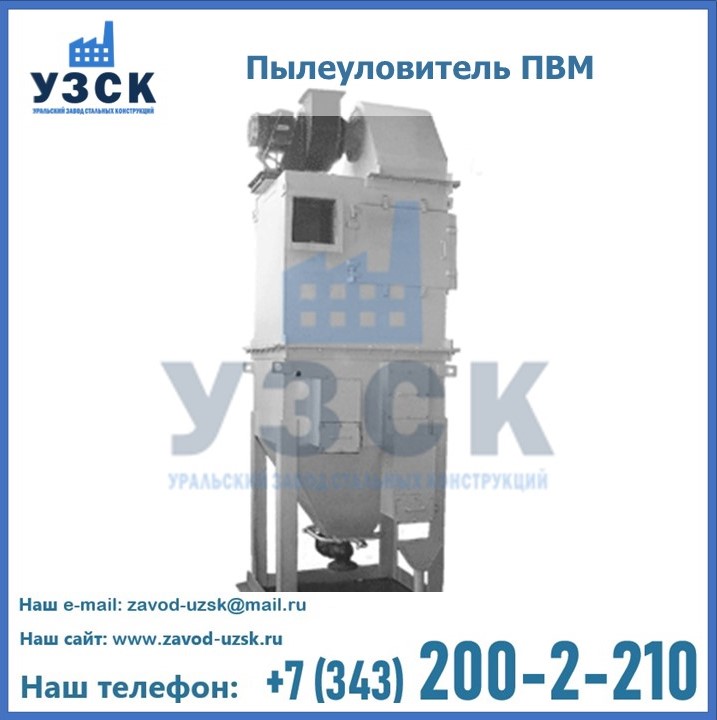 Вентиляционные мокрые пылеуловители ПВМ применяются в процессе очистки воздуха посредством вытяжных вентиляционных систем. Воздух очищается от мелко и среднедисперсной пыли, а также от волокнистой взрывоопасной пыли и прочих, которые плохо смачиваются, а потому обладают высоким риском взрывоопасности, и всплывают на поверхность. Пылеуловители ПВМ обладают высокой противодетонационной защитой. На Уральском Заводе Стальных Конструкций в Экибастузе осуществляют производство и реализацию пылеуловителей ПВМ, в том числе согласно техническому индивидуальному заданию заказчика.
