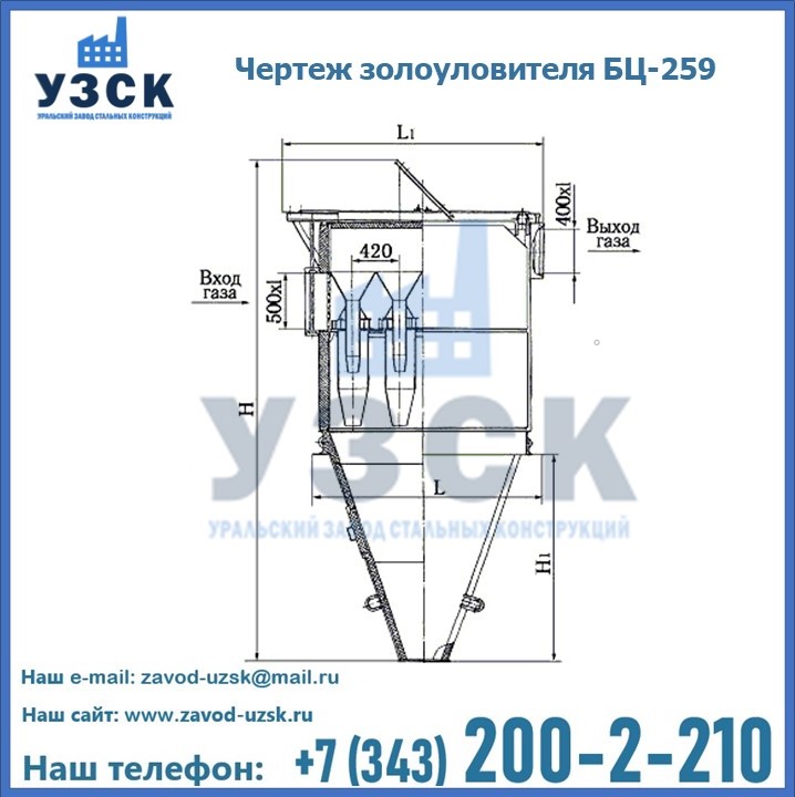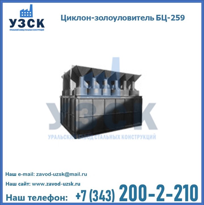 Если вы планируете купить то или иное оборудование, например, циклоны-золоуловители БЦ-259, то рекомендуем заказать данный товар на сайте УЗСК. Мы производим и реализуем продукцию высокого качества по приемлемой цене. Эксперты Уральского Завода Стальных Конструкций в Экибастузе проконсультируют вас по всем вопросам, помогут сделать выбор и оформить заказ без лишних временных затрат. Мы гарантируем соответствие нашей продукции всем требованиям ГОСТ и ТУ, а также износостойкость и высокую производительность предлагаемого оборудования. Если требуется изготовить циклон нестандартных размеров, то такой вариант выполнения заказа тоже предусмотрен, так как предприятие имеет собственные производственные площади и надежных поставщиков. На все поставляемое или производимое оборудование имеются чертежи и прочая техническая документация. Заказать и купить циклоны или прочее оборудование высокого качества и по доступной цене можно через наш сайт или по указанному в разделе «Контакты» телефону.