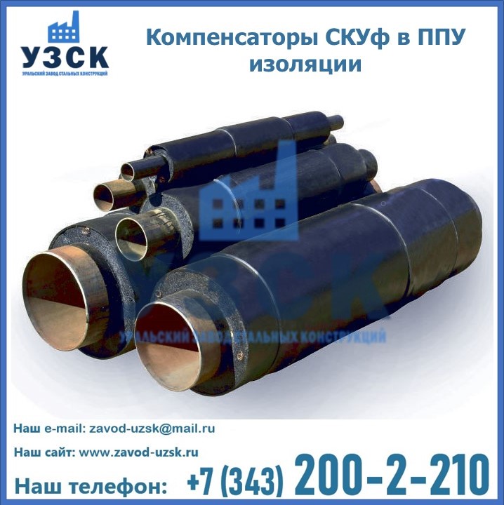 Если трубы для прокладки усилены теплоизоляцией ППУ, то на них допустимо устанавливать только cильфонный компенсатор СКУф в ППУ с такими же размерами теплоизоляционного слоя. На данный момент, такие устройства считаются одними из наиболее надежных, эффективных и долговечных элементов, способных обеспечить бесперебойную работу трубопроводов. На заводе «УЗСК» вы можете купить СКУф ППУ и другие компенсаторы по приемлемой цене, от надежных производителей. УЗСК осуществляет поставки сильфонных компенсаторов СКУ в ППУ любых типоразмеров. Наше предприятие поставляет и производит оборудование, имеющее длительную гарантию и большой эксплуатационный ресурс. Если требуется изготовить нестандартное изделие, то такой вариант выполнения заказа тоже предусмотрен, так как предприятие имеет собственные производственные площади и надежных поставщиков. На все оборудование имеются чертежи и прочая техническая документация. Чтобы заказать сильфонный узел СКУф в ППУ изоляции в Экибастузе необходимо направить запрос через форму онлайн-заказа на сайте или связаться с нашими специалистами по телефонам, указанным в разделе «КОНТАКТЫ .