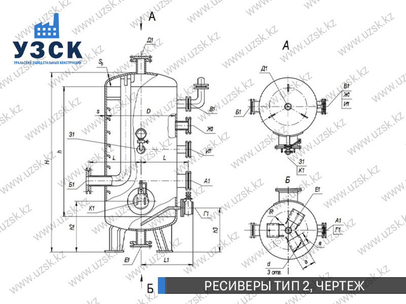 Ресивер высокого давления — это специализированное оборудование, разработанное для накопления и хранения воздуха или газа под давлением, а также для подачи рабочей среды на технологические линии предприятий. Завод «УЗСК» осуществляет изготовление газовых и воздушных ресиверов (воздухосборников) любой сложности. Мы предлагаем самые выгодные цены на ресиверы из углеродистой стали, ресиверы из легированной стали и ресиверы из нержавеющей стали в Экибастузе.